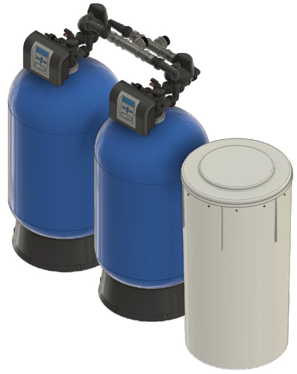 Der Parallelenthärter AQUBO pro IQ mit einzigartiger IQ-Technologie, besteht aus zwei Harzdruckflaschen mit einem Salzlösebehälter und einer Verrohrung in Edelstahl. Im Gegensatz zum Pendelenthärter sind jedoch beide Harzdruckflaschen gleichzeitig im Betrieb. Wenn eine Flasche erschöpft ist, wird sie automatisch abgesperrt und regeneriert. Die IQ-Steuerung überwacht den Durchfluss der einzelnen Flaschen mittels zweier Durchflussmesser und löst mit Hilfe der intelligenten Programmlogik im Wechsel die Regeneration aus. Da der Erschöpfungsgrad permanent überwacht wird und beide Säulen immer 50 % in der Leistung voneinander versetzt sind, ist es nicht möglich, dass beide Enthärter gleichzeitig den Reinigungszyklus auslösen. Wird eine Regeneration frühzeitig ausgelöst, errechnet die Steuerung die effektiv benötigte Menge an Regeneriermittel. Wir nennen das volumenproportionale Regeneration. Die Anlagen sind hygienisch optimiert und funktionieren besonders ökologisch.